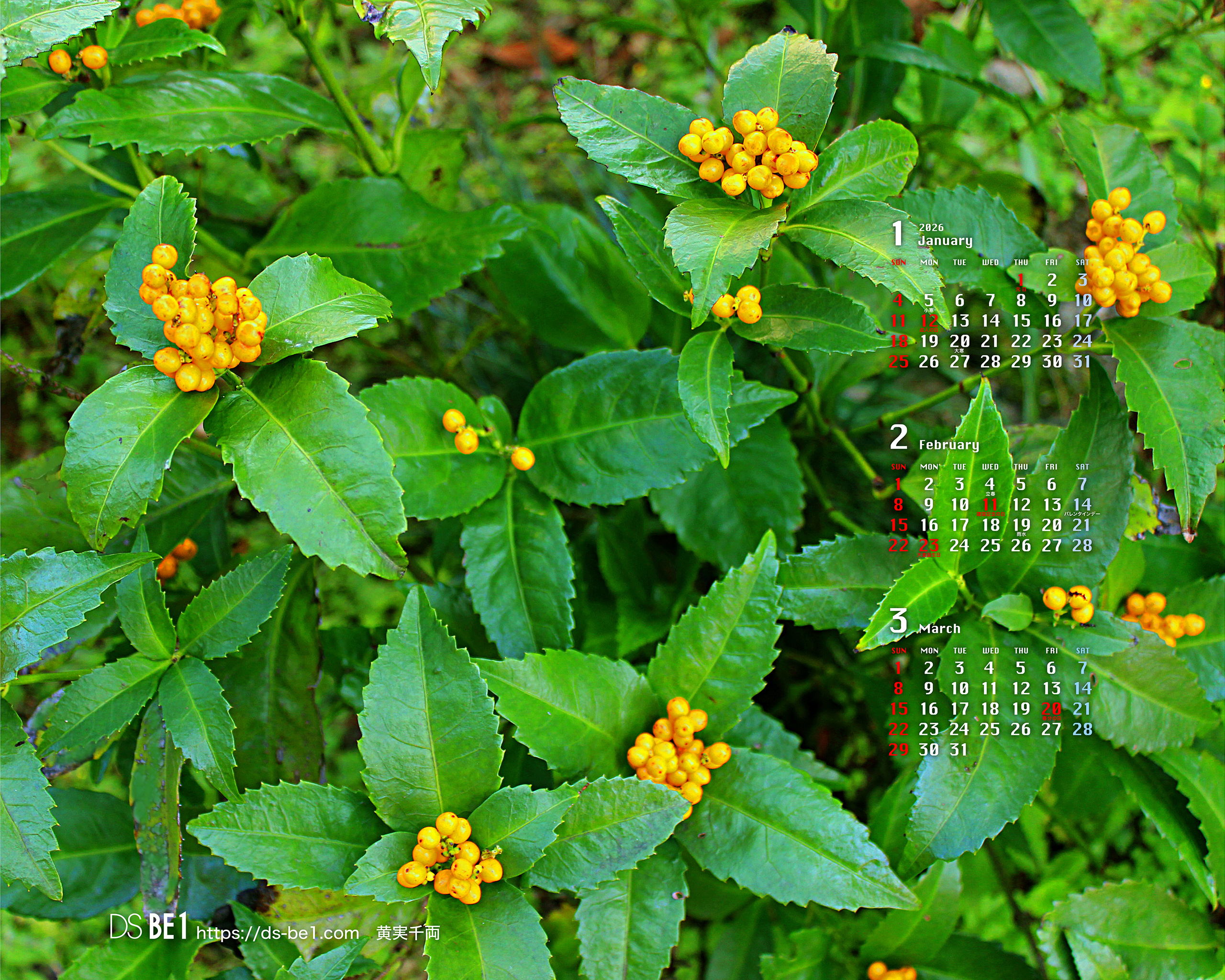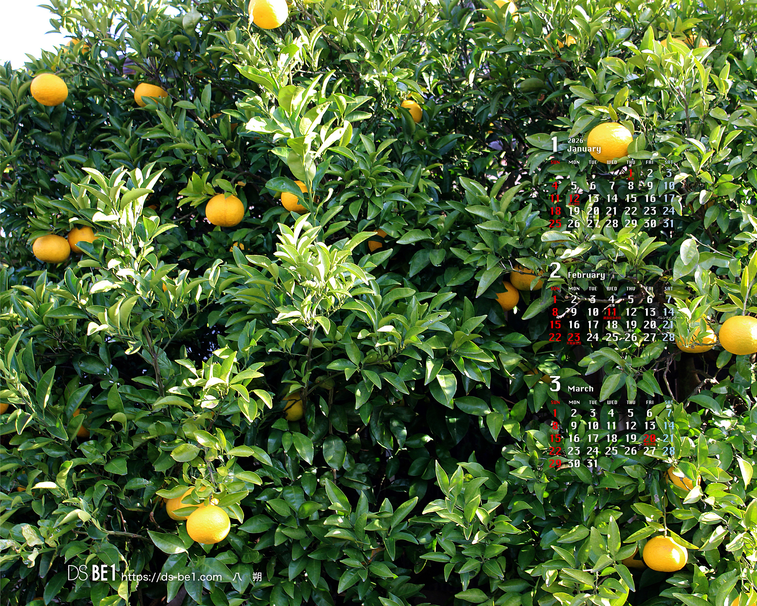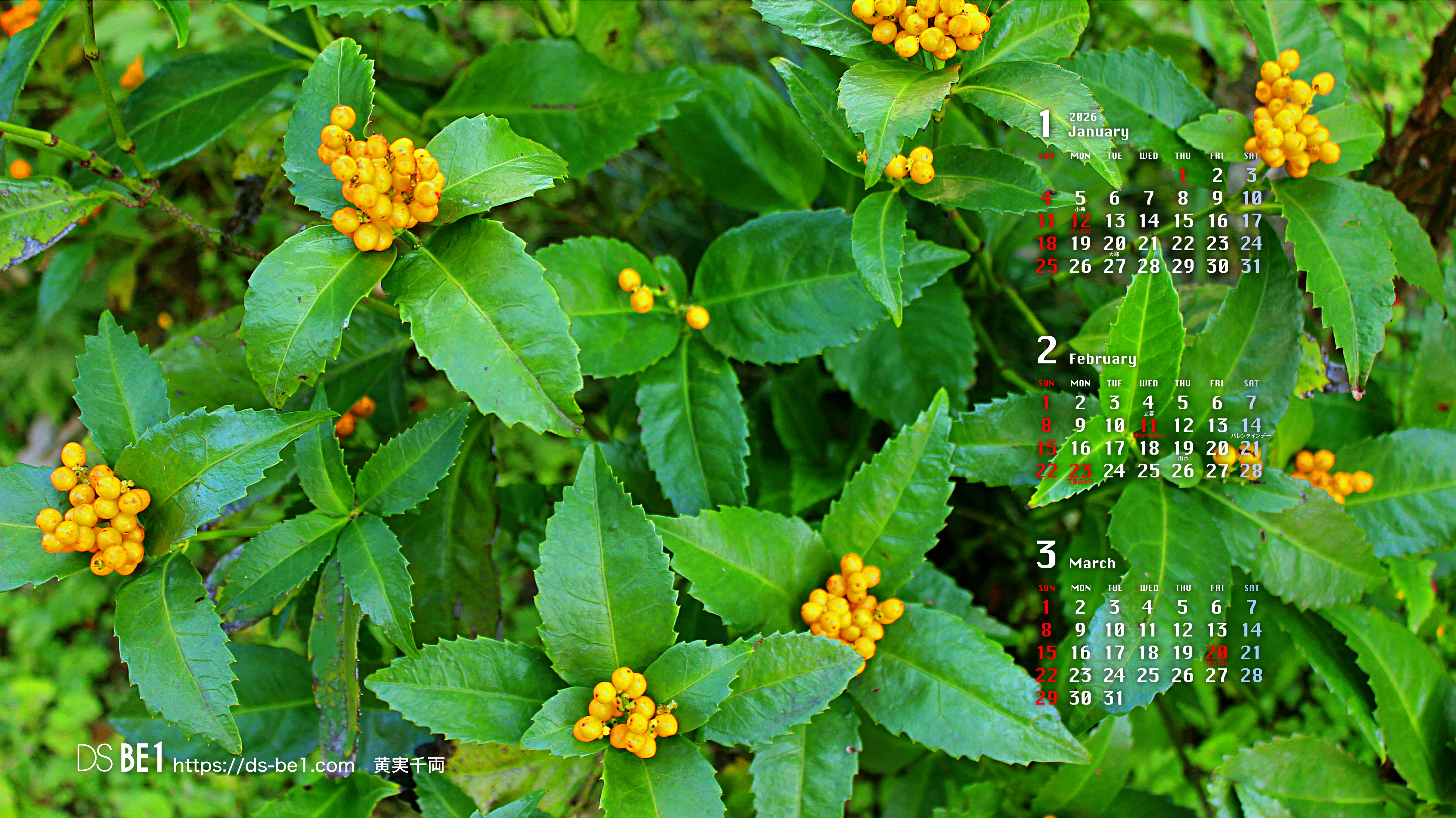 山陰・鳥取県の「田舎」から自然の彩り・季節の味わいをお届けしている「壁紙カレンダー」です。季節の花・植物、風景、小動物、昆虫、果物など春夏秋冬・自然の中の彩りをカットし、壁紙およびカレンダー付きの壁紙にして毎月更新しています。パソコンの壁紙(無料)としてお楽しみください。 (※カレンダーに、万一誤りがございました場合はご容赦ください。なお、お手数ですがご一報頂ければ幸いです。)