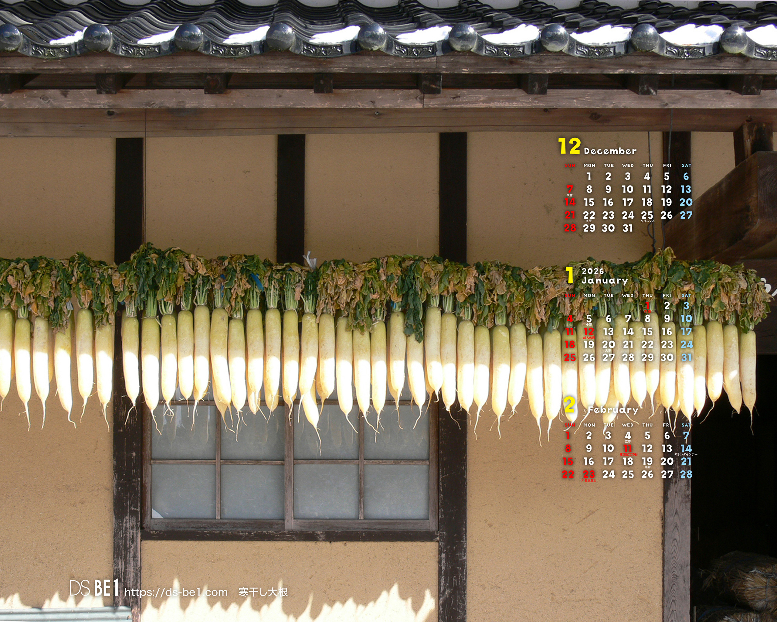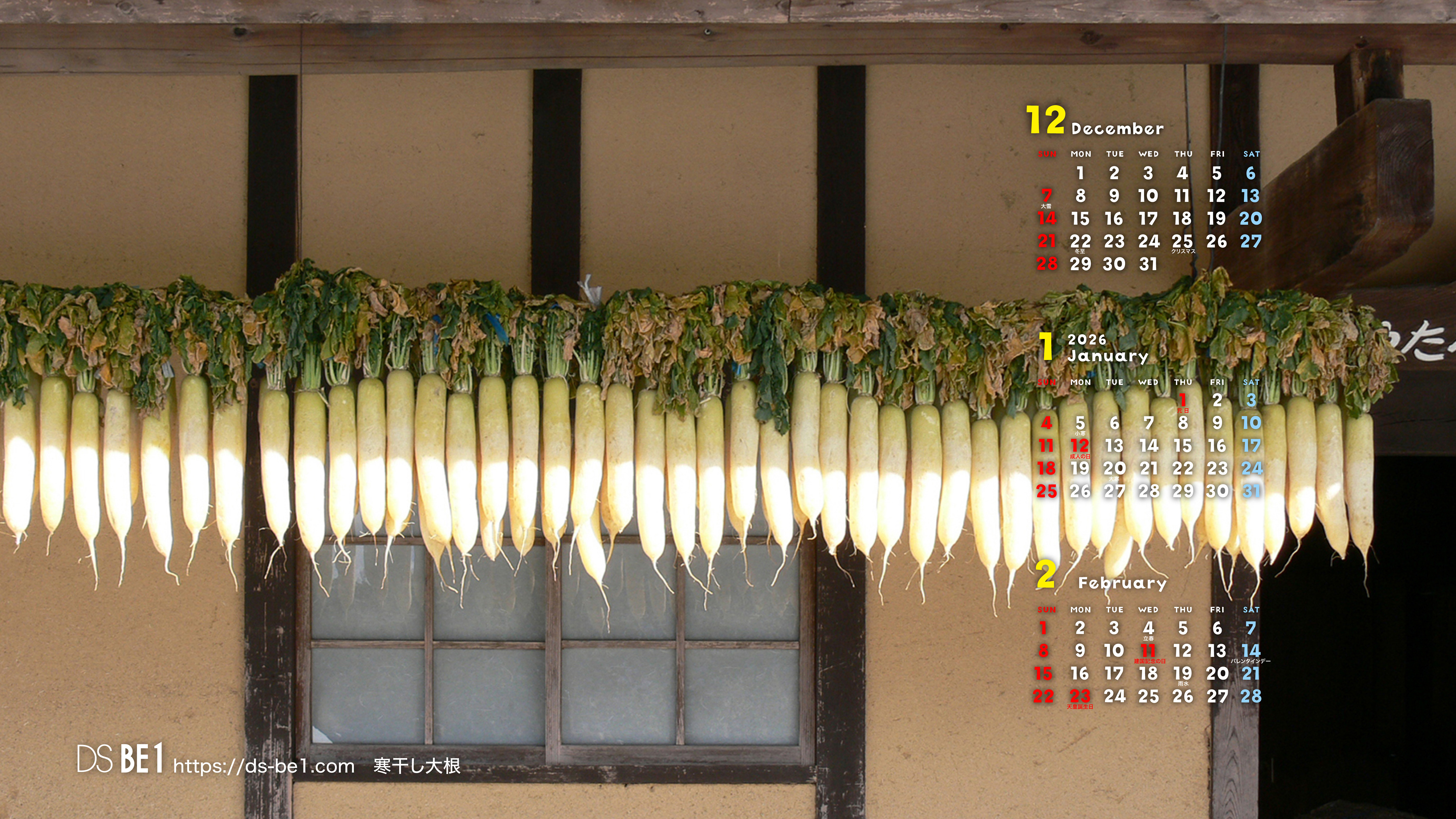 山陰・鳥取県の「田舎」から自然の彩り・季節の味わいをお届けしている「壁紙カレンダー」です。季節の花・植物、風景、小動物、昆虫、果物など春夏秋冬・自然の中の彩りをカットし、カレンダー(3ヶ月)付きの壁紙にして毎月更新しています。パソコン・スマホの壁紙(無料)としてお楽しみください。 (※カレンダーに、万一誤りがございました場合はご容赦ください。なお、お手数ですがご一報頂ければ幸いです。)